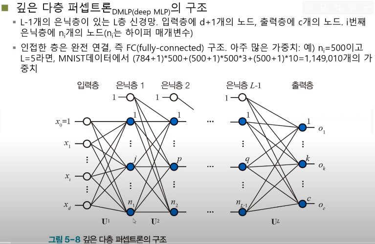 깊은 다층 퍼셉트론이란 무엇이냐 → 다층 퍼셉트론에서 은닉층을 더 많이 추가하면 깊은 다층 퍼셉트론