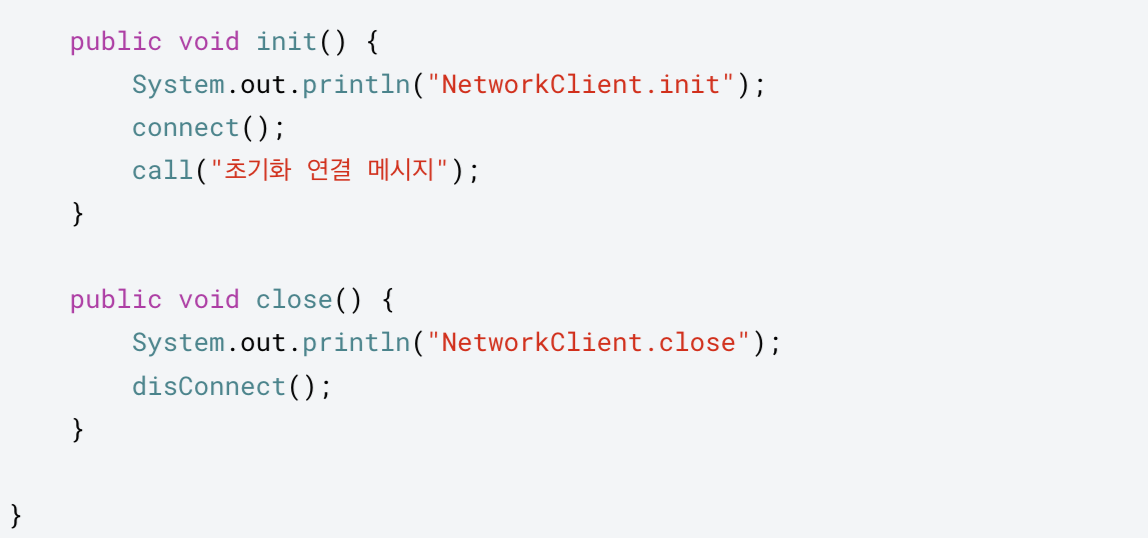 + 코드가 아니라 설정 정보를 사용하기 때문에 코드를 고칠 수 없는 외부 라이브러리에도 초기화, 종료 메서드를 적용할 수 있다. -> 이것도 뭔소린지 몰라서 마지막에 정리