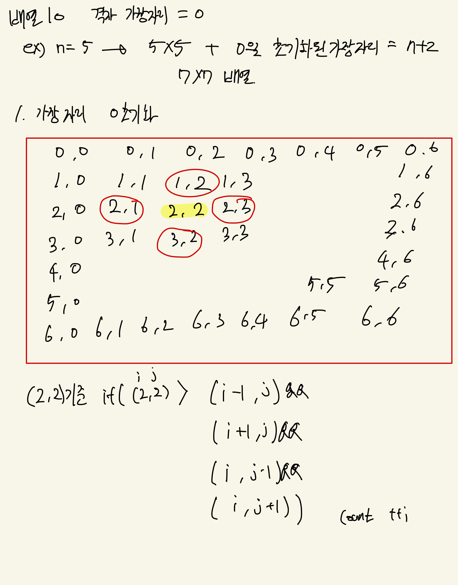 격자의 가장자리는 0으로 초기화 되었다고 가정한다.