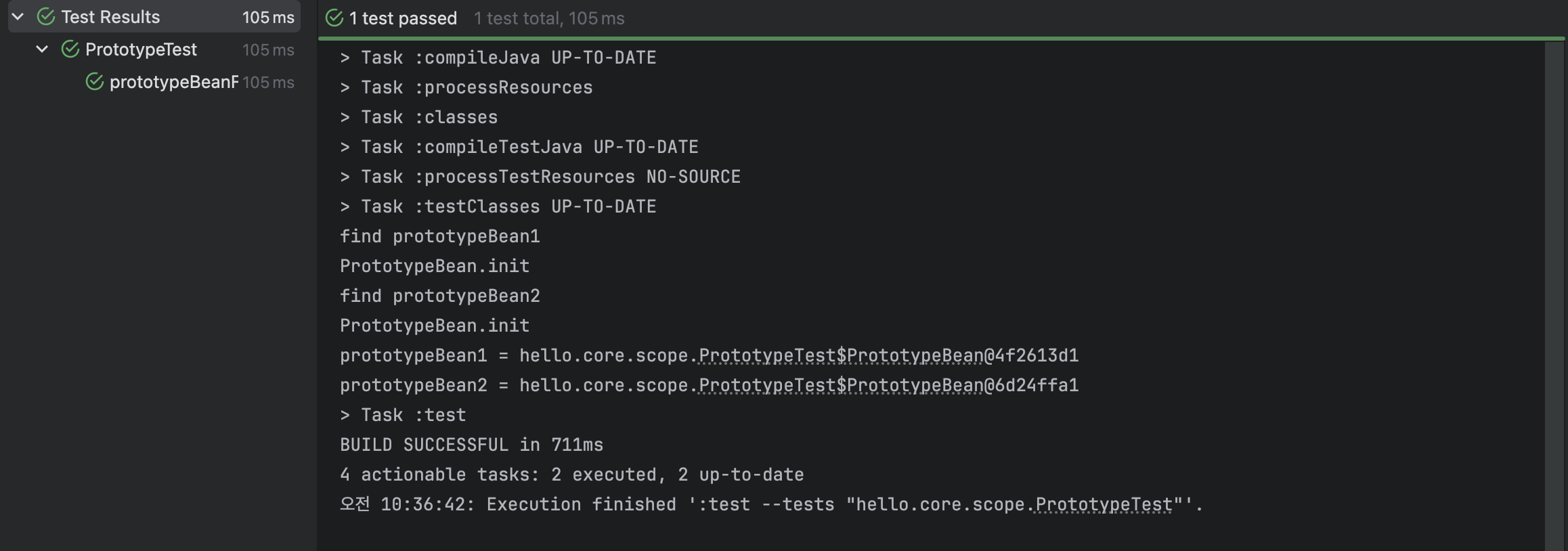 스코프를 프로토 타입으로 설정한뒤 실행 결과를 보자