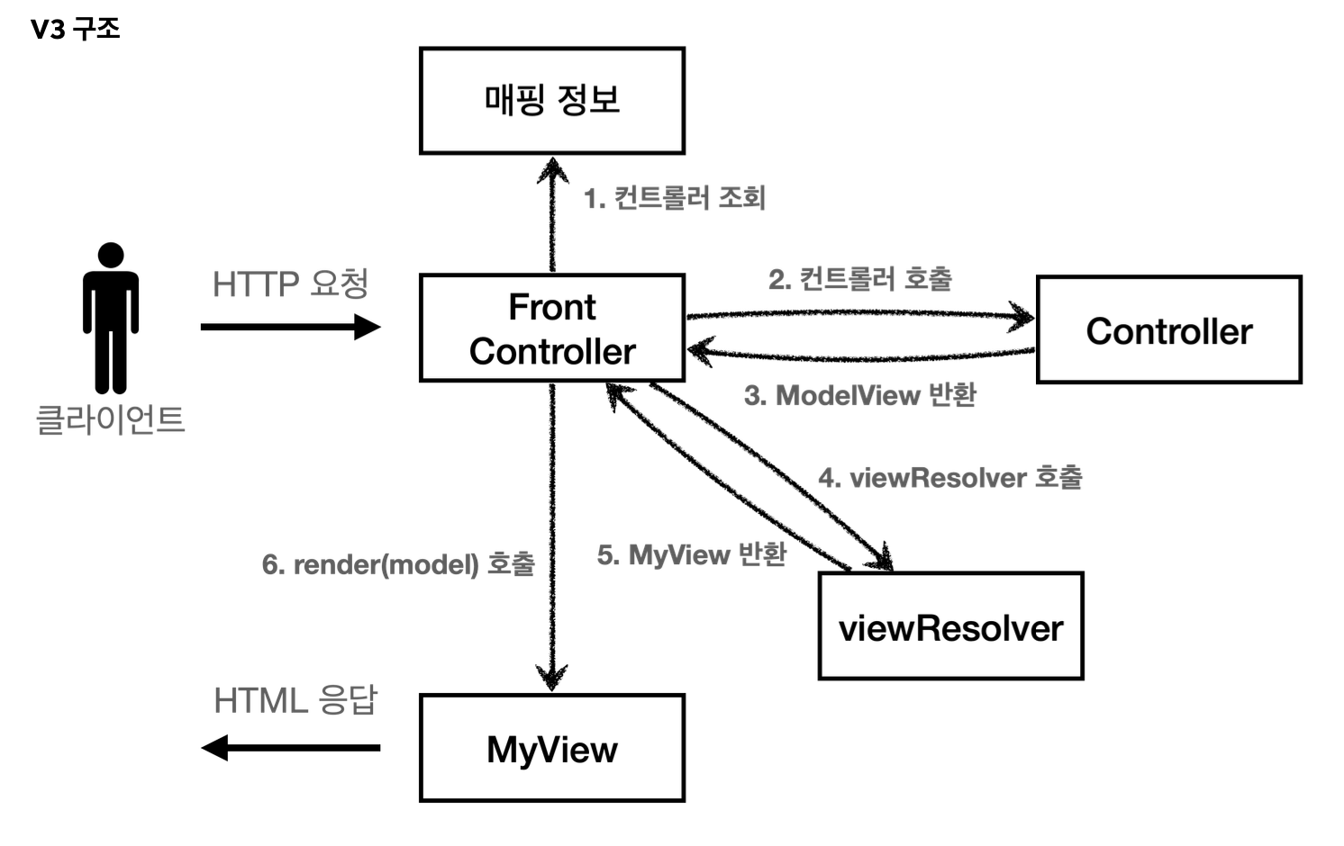 https://bdisappointed.tistory.com/154 [Spring] FrontController 도입하기 V1[Spring] 서블릿과 JSP로 MVC 흉내내기 , 그리고 한계점서블릿과 JSP를 통해 MVC를 구현 해볼 예정이다. 구현은 다음과 같다.서블릿 : 컨트롤