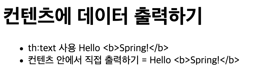 <li>컨텐츠 안에서 직접 출력하기 = [[${data}]]</li>