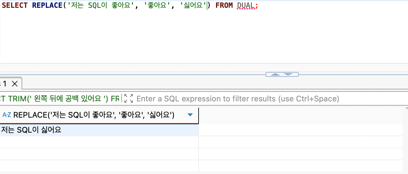 문법은 다음과 같다. REPLACE(원문, 치환 대상, 치환할 내용)