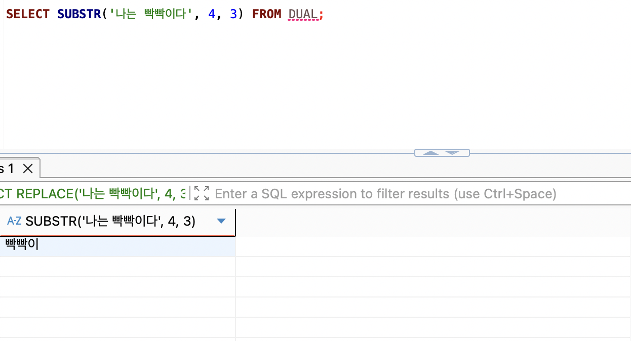 문법은 SUBSTR(대상, 시작위치, 몇자) 이다.