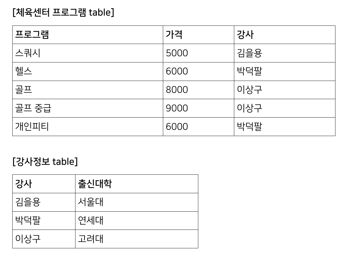 그래서 출신 대학 컬럼을 다른 테이블로 빼면 제 3정규형을 만족한다고 한다.