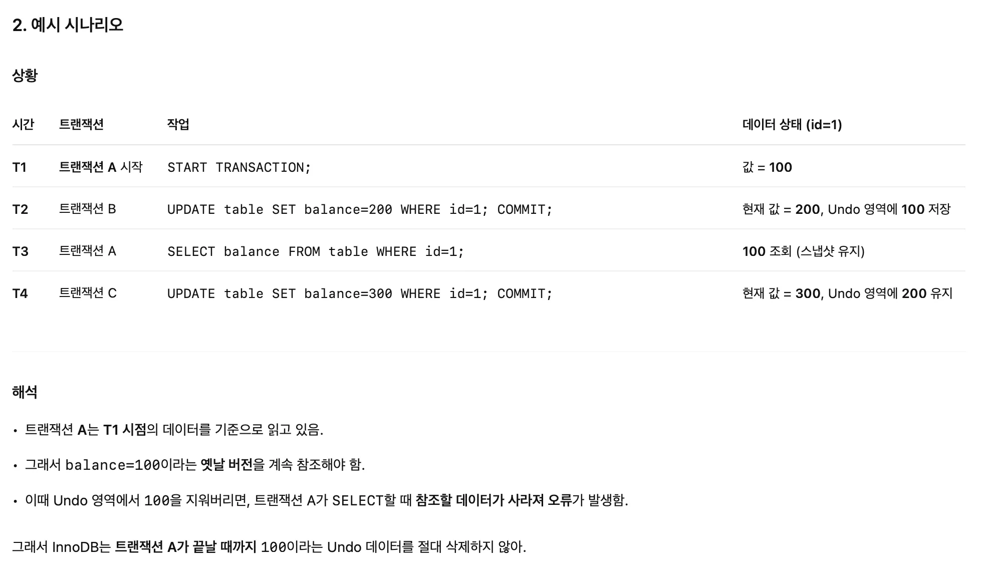 언두 영역에 데이터는 스토리지 엔진이 알아서 불필요하다고 판단되는 시점에 삭제한다. (아마 커밋 시점?)