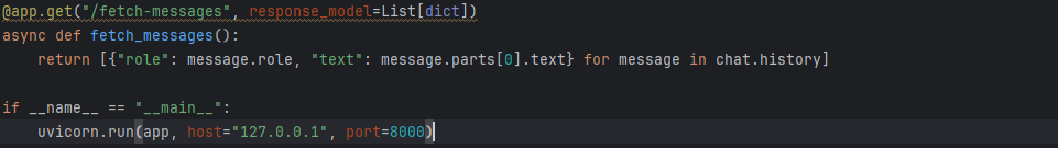 위 코드는 http method (get,post,delete,put) 중에서 get 메서드를 처리하여 uvicorn 패키지를 통해 로컬 호스트 서버를 구현하는 코드의 일부분이다.