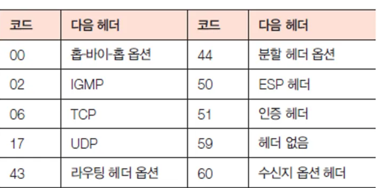- 다음 헤더 : 프로토콜 필드 명칭이 바뀐 것