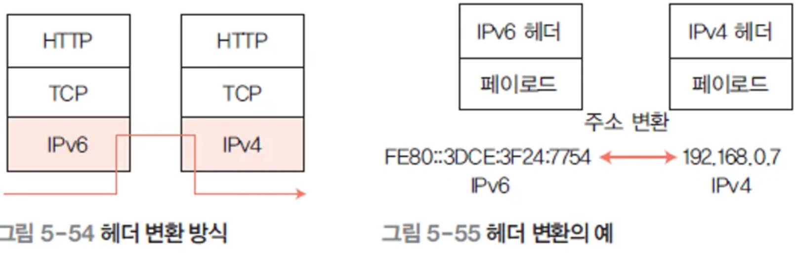 - 네트워크 계층에서 v4 → v6 또는 반대로 패킷 헤더를 변환하는 기술