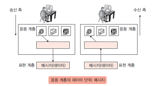 응용 계층 : 사용자가 직접 사용하는 서비스 (웹, 이메일 등)