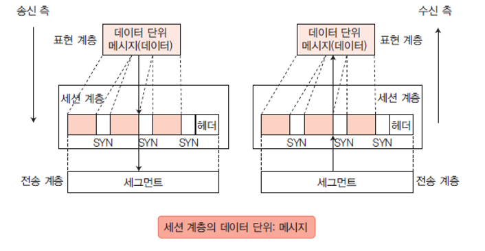 - 데이터 단위는 메시지 (Message) 이고, 전송 계층으로 전송할 순서를 결정한다