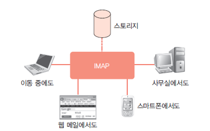 - 서버에서 다운로드 후 삭제하는 불편함을 개선 한 프로토콜이 IMAP 프로토콜