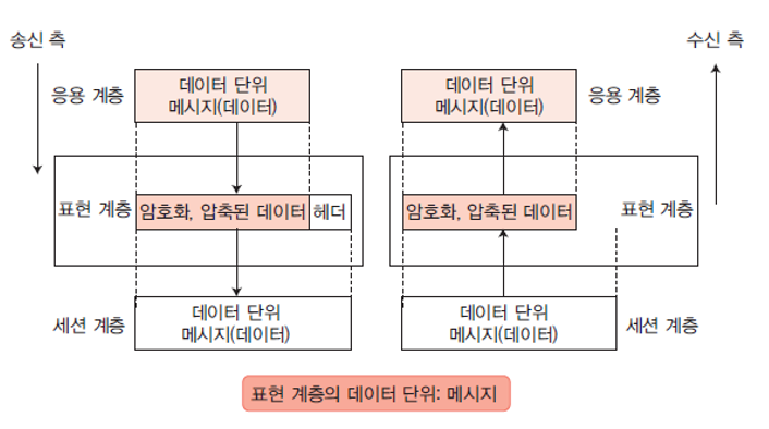 표현 계층 : 데이터를 변환, 압축, 암호화하여 이해 가능하도록 처리