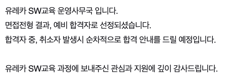 그럼 본격적으로 결과 메일 + 문자를 받은 타임라인과 함께 예비 - 불합격 후기를 적어보려고 한다.
