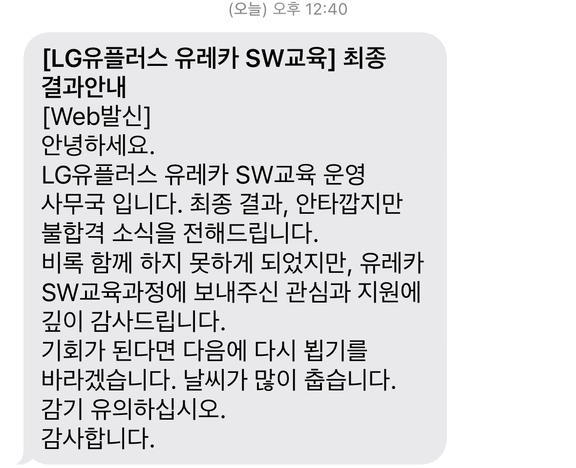1/20 결국 불합격 통보를 받았다.